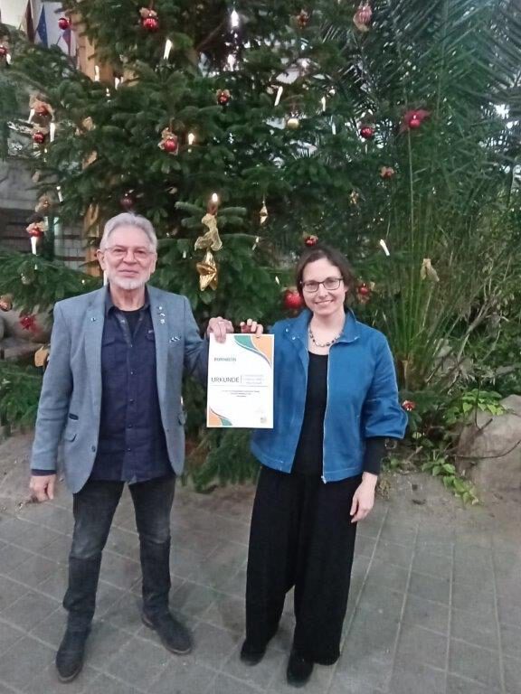2 Urkunden für Michael Junghans für den herausragenden sportlichen Erfolg bei den TT-Bezirksmeisterschaften des RES-Kreises (AK 75) und den belegten 2. Platz sowie für die Verleihung der „Goldenen Spielernadel“ des WTTV
